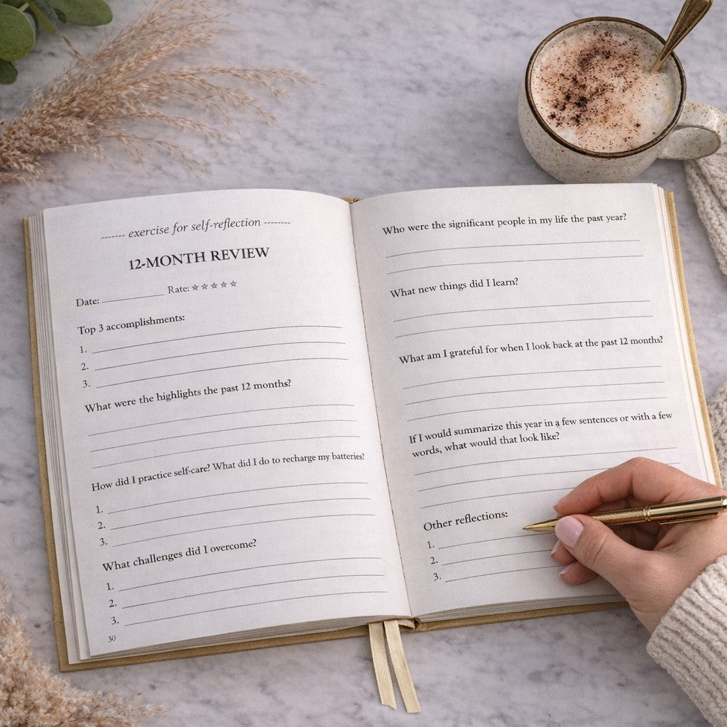 Throughout the journal you'll discover writing exercises that support self-awareness, clarity and conscious decision-making. At the end you'll find an annual review to reflect on your growth and celebrate your wins.